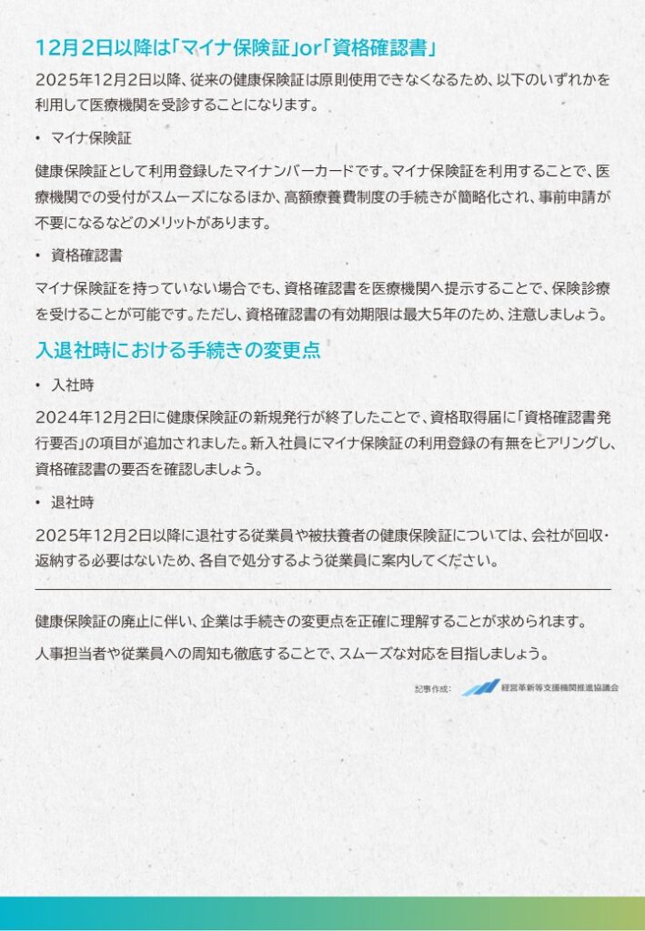 【健康保険証】12月2日以降は原則廃止!入退社時の注意点を確認