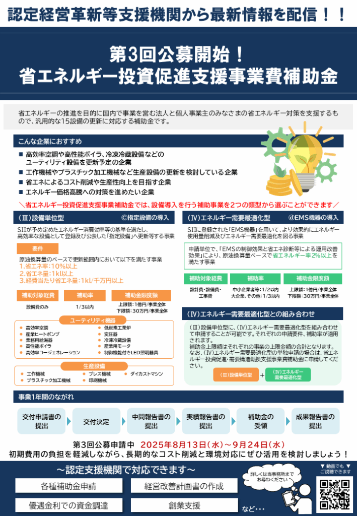 第3回公募開始!省エネルギー投資促進支援事業費補助金